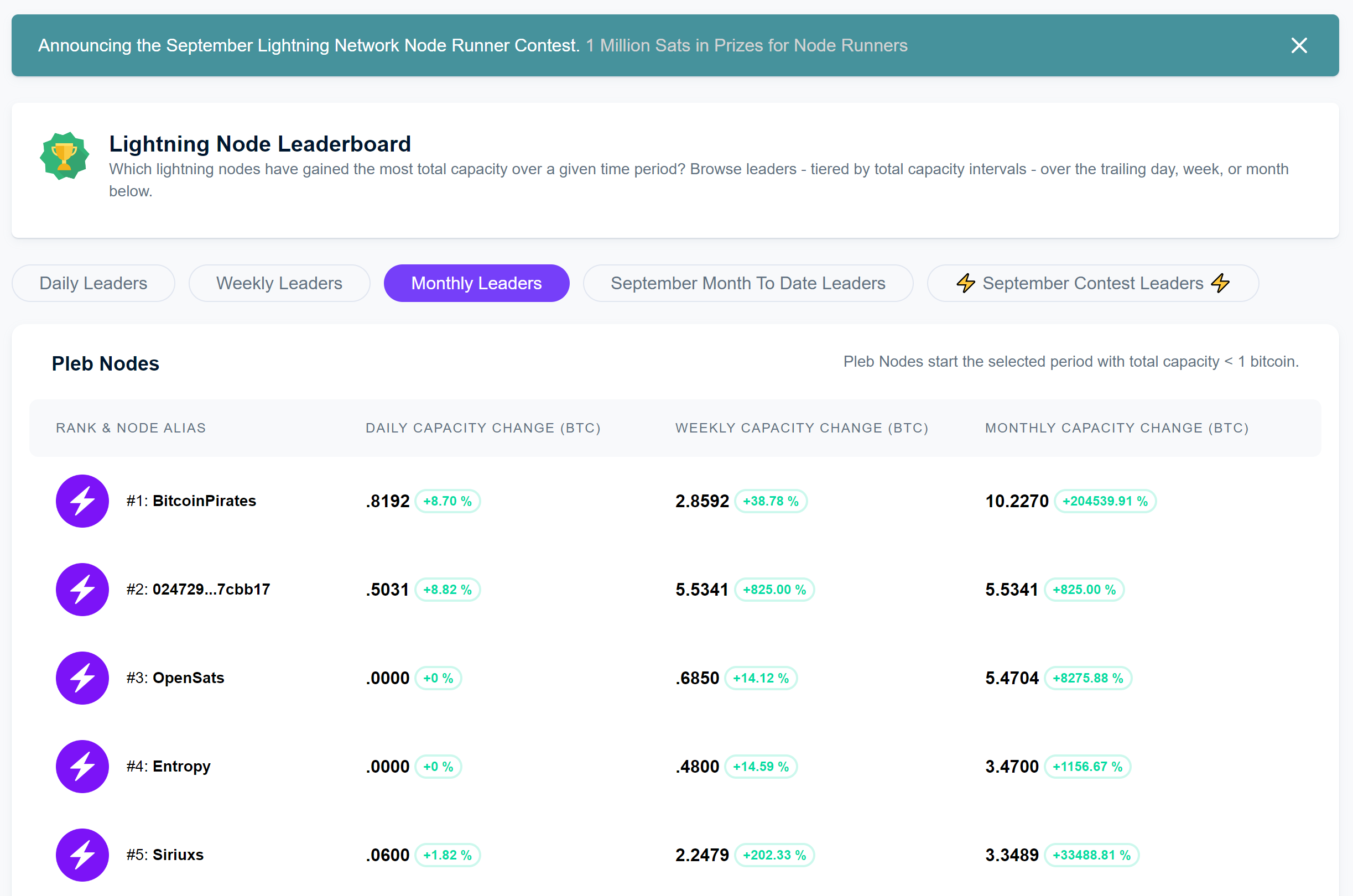 The September Node Runner Contest with 1 Million Sats in Rewards